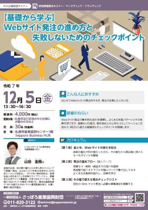 予定しておりました「【基礎から学ぶ】Webサイト発注の進め方と失敗しないためのチェックポイント (開催日:12月5日)」は、都合により中止させていただくこととなりました。