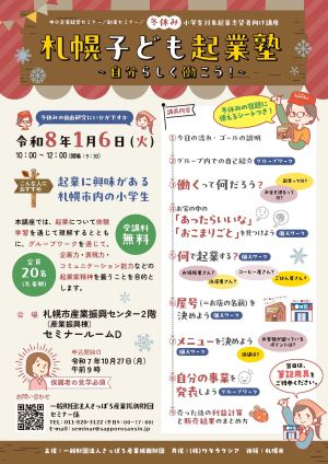 冬休み小学生高学年対象起業志望者向け講座札幌子ども起業塾~自分らしく働こう!~